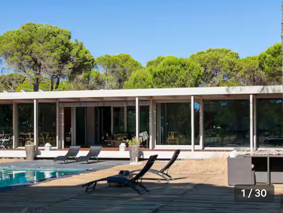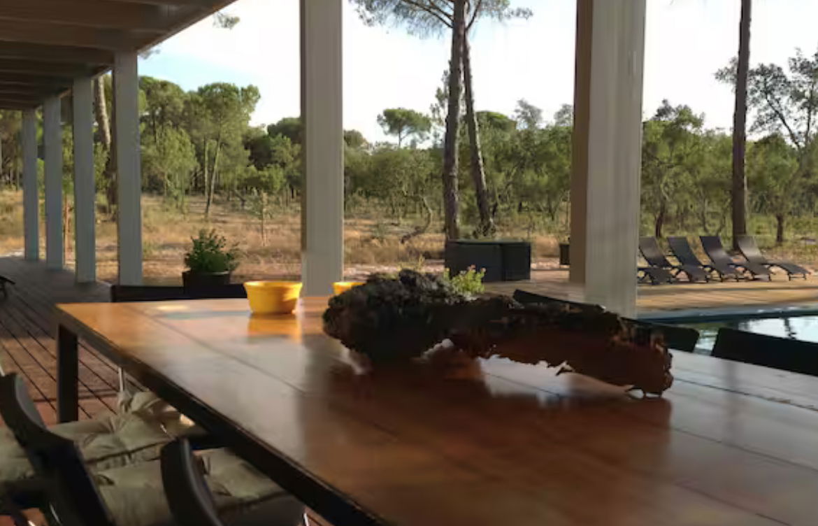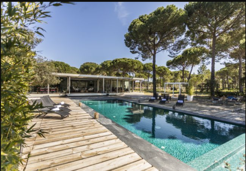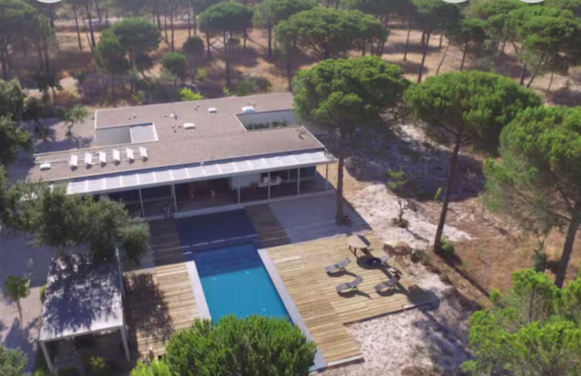 Forest Villa is a modern architectural retreat set within an 16‑hectare private estate of cork and pine forest in Comporta. Designed for guests seeking privacy, nature, and minimalist comfort, it offers 6 suites, a large private pool, and multiple outdoor living spaces just 10 minutes from Pego and Carvalhal beaches.
